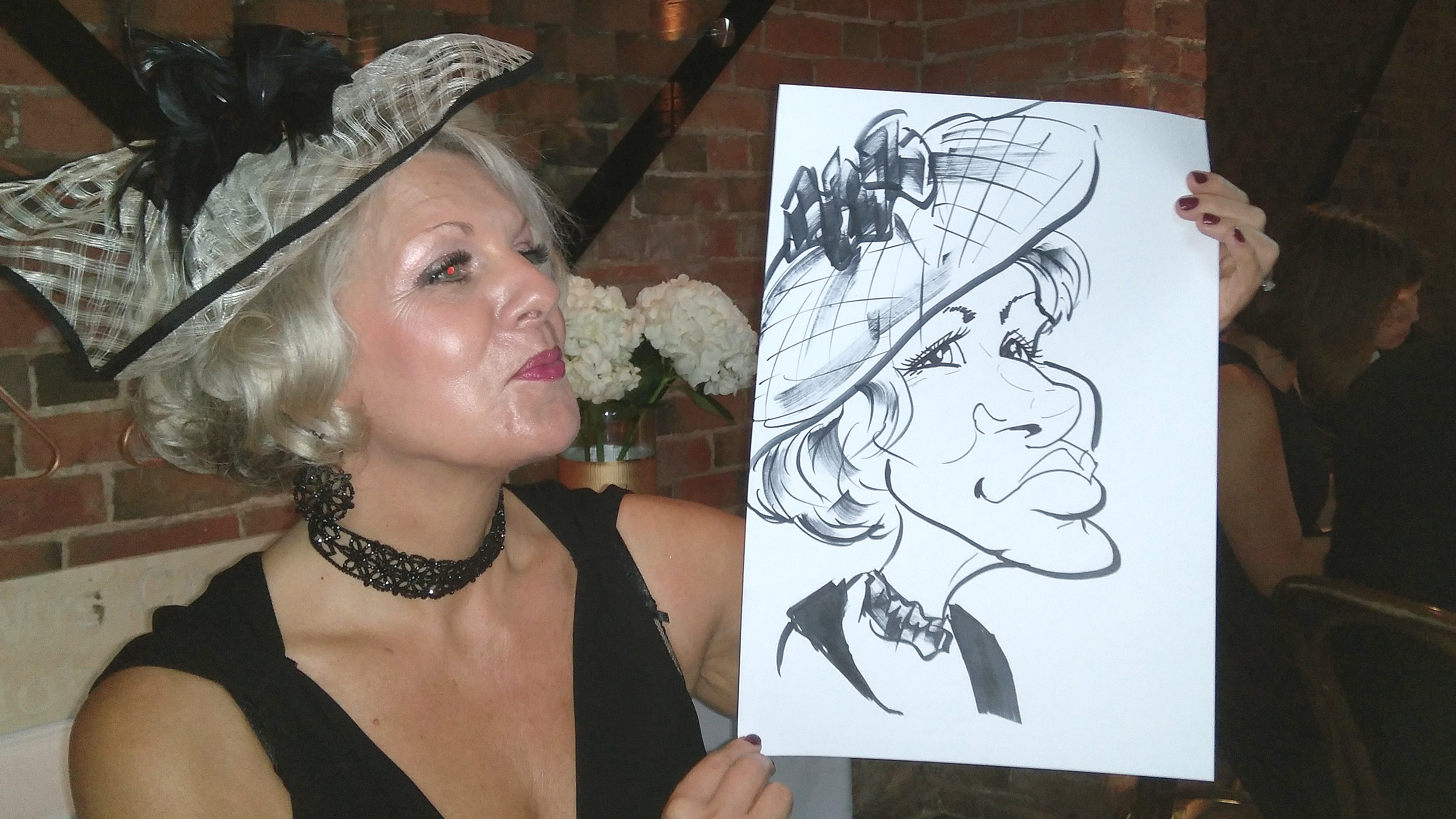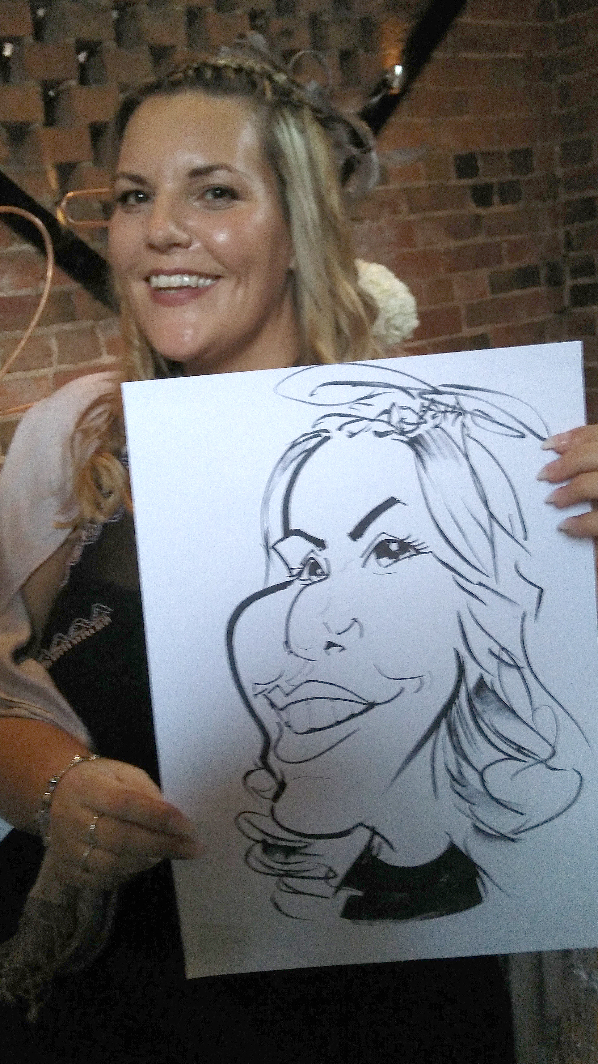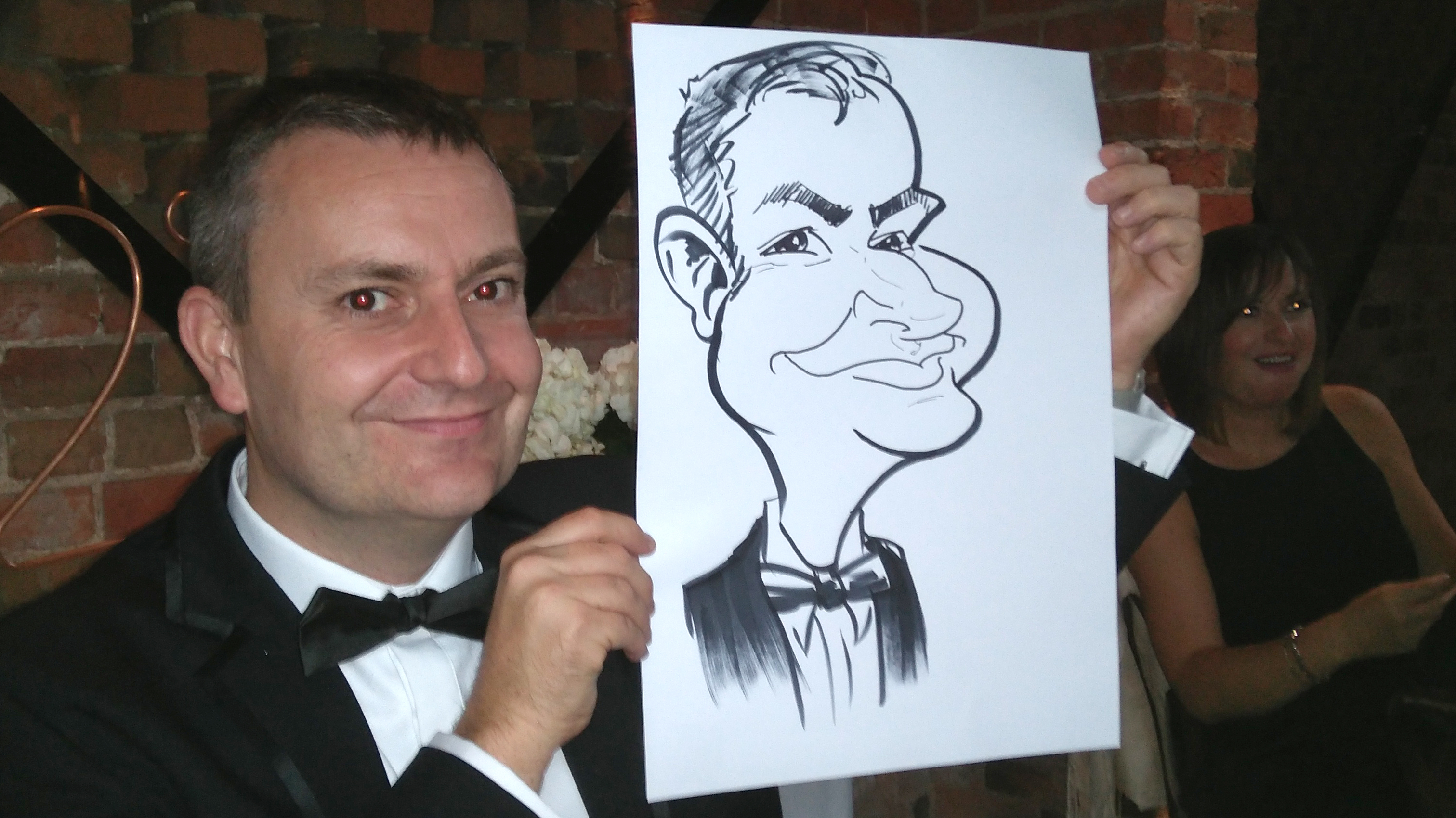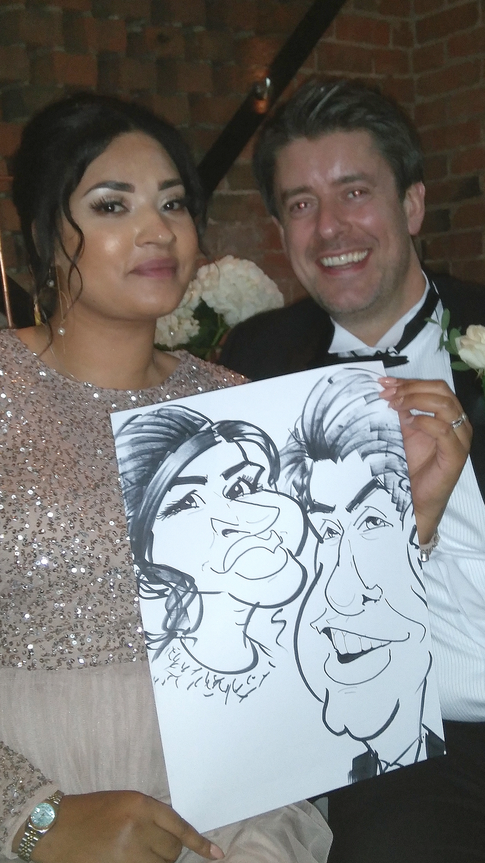 This caricature wedding entertainment booking was for Tammy and James. They know some wonderful people who they invited to their wedding, some who were big characters).