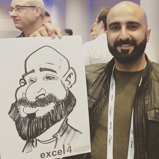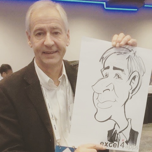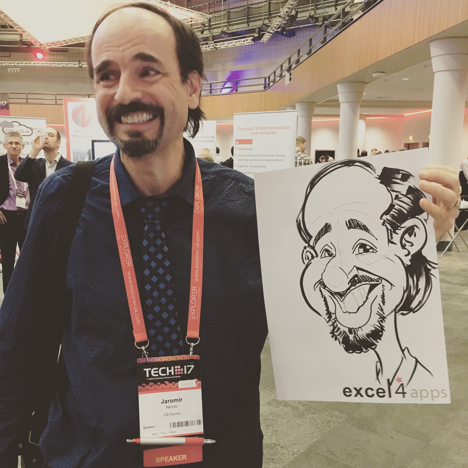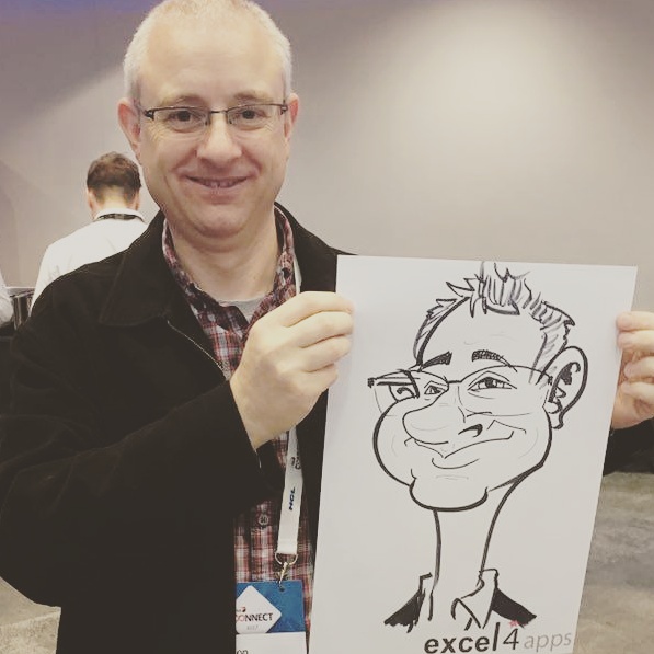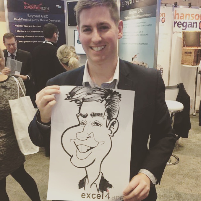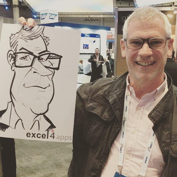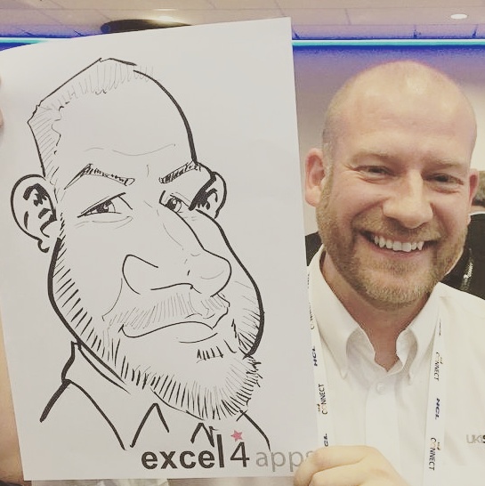 I attended a convention for software at the ICC in Birmingham on 27 & 28 November and another on 4 & 5 December 2017 and was drawing caricatures at the Excel4Apps stand helping to entertain and pull in potential clients as well as amusing existing clients.